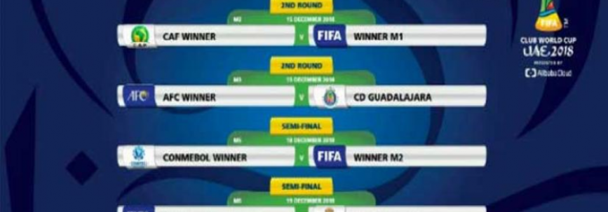 وسيلعب الفائز من بطل آسيا ووادي الحجارة مع ريال مدريد بطل أوروبا وحامل اللقب في الدور قبل النهائي يوم 19 ديسمبر بينما قبلها بيوم واحد سيظهر بطل أمريكا الجنوبية ضد بطل أفريقيا أو العين أو ولنغتون